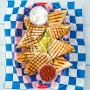 Shredded chicken, BBQ sauce, Vermont sharp cheddar, light red onion, shredded mozzarella, freshly chopped basil, buttered crust