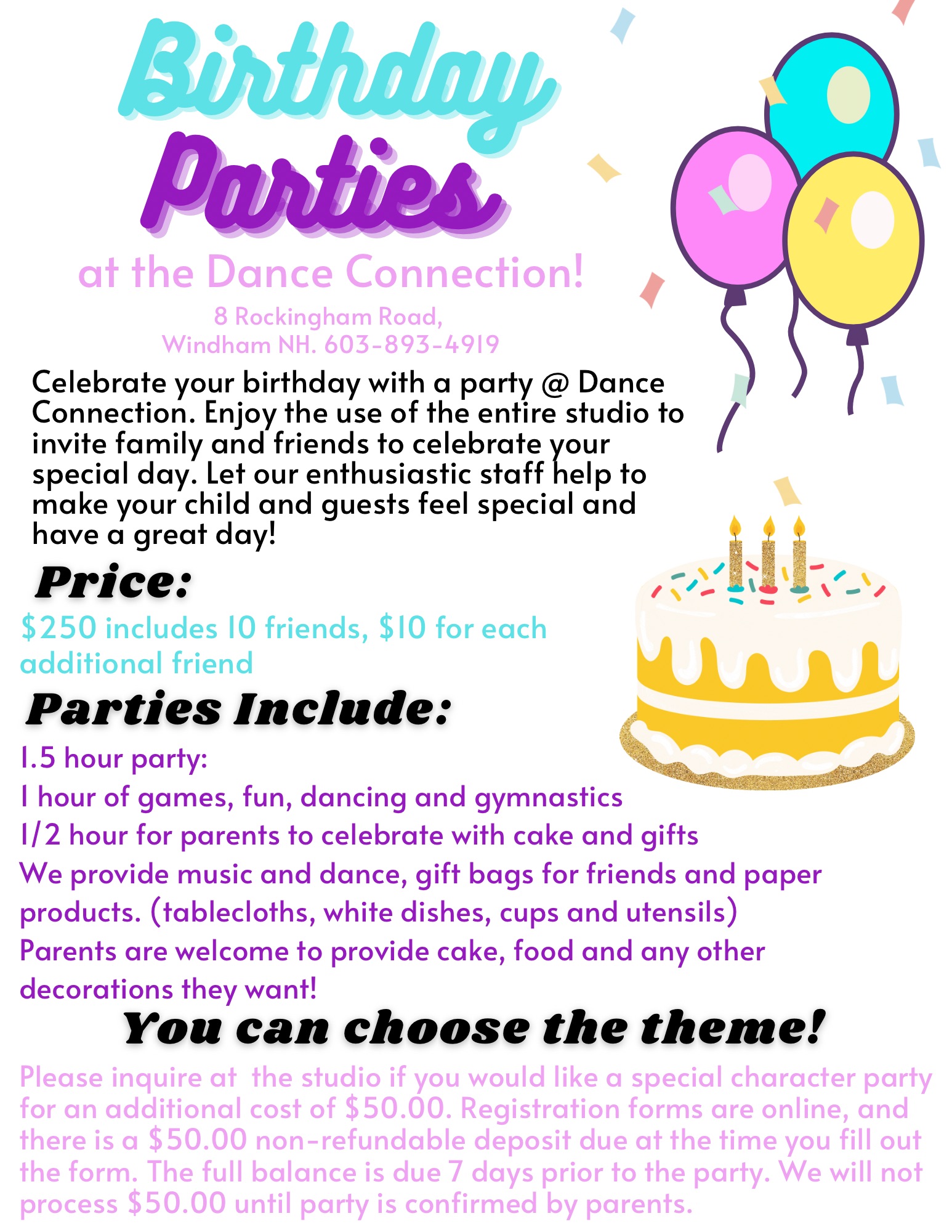 Dance Connection Birthday Party Registration Form