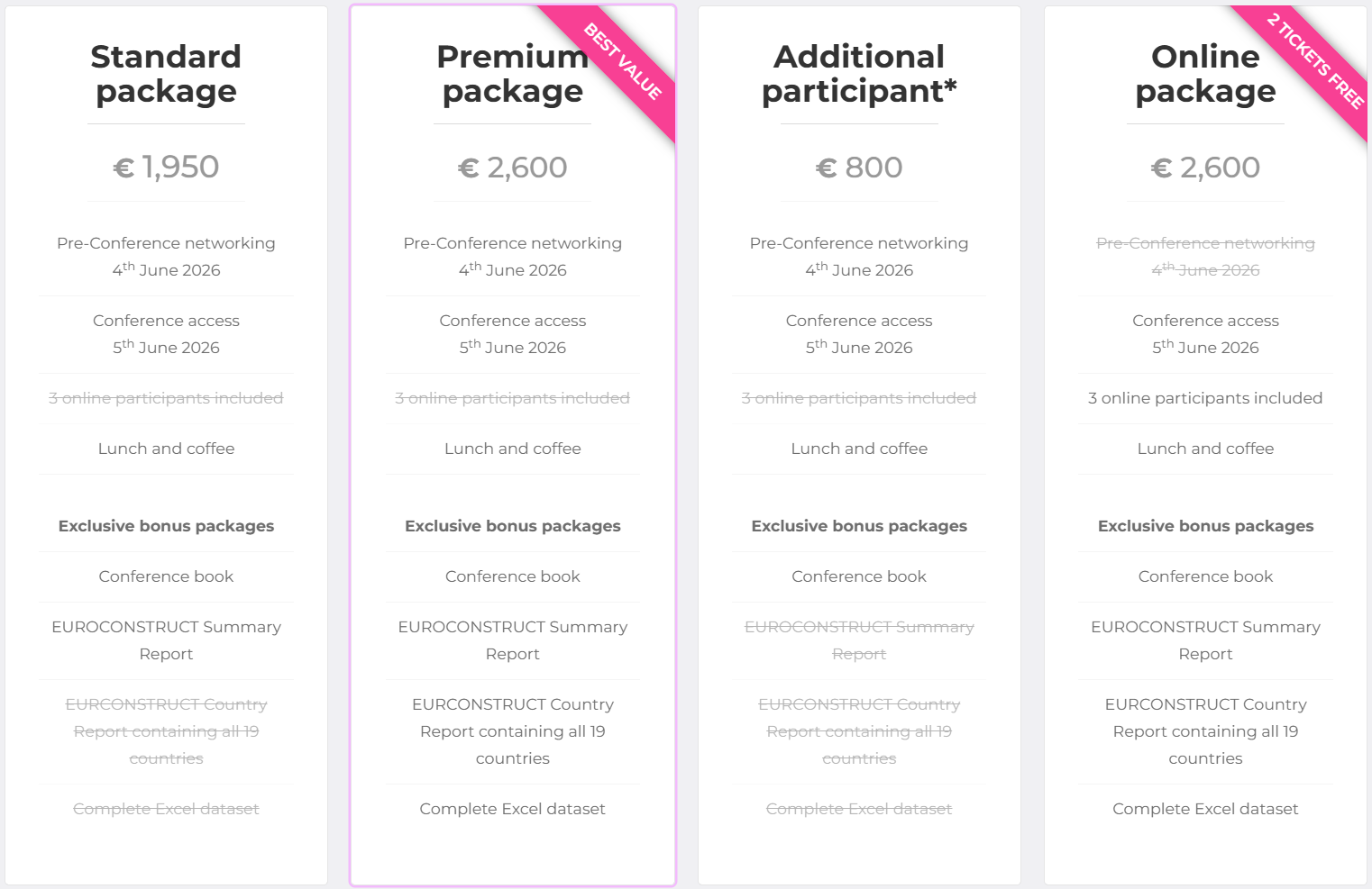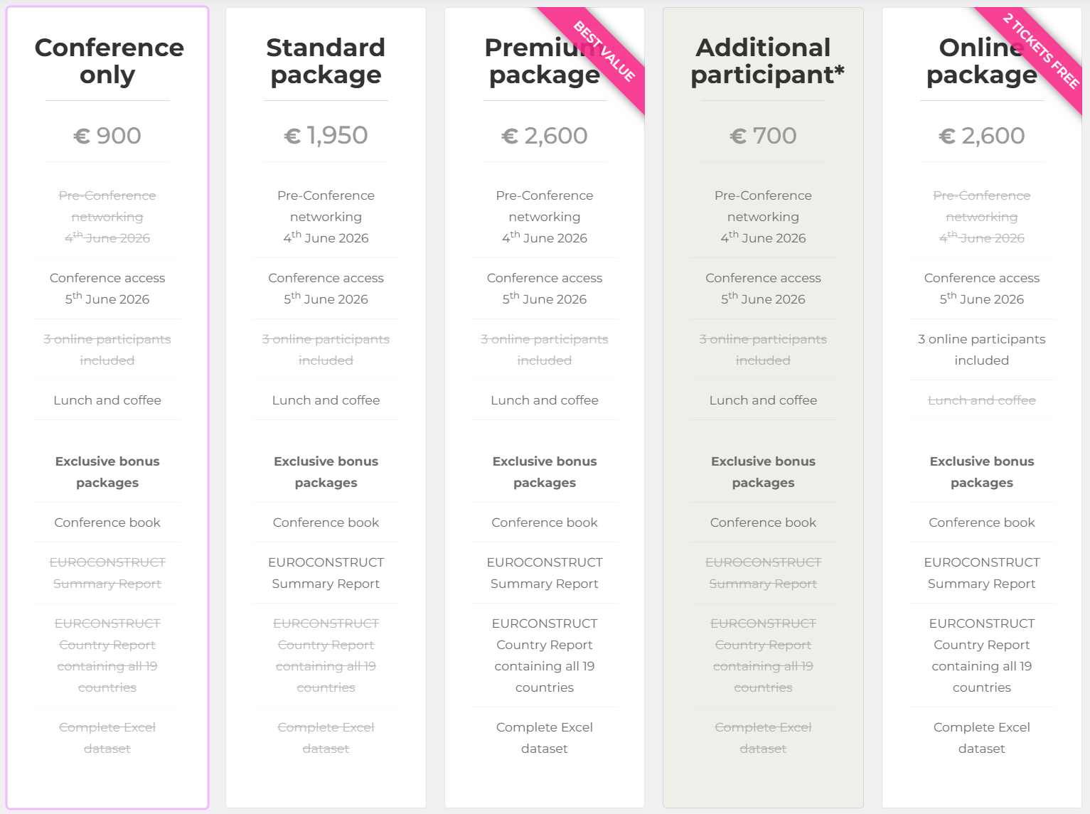 - In writing to euroconstruct@forecon.fi not later than 30 days before the event (until 6th May 2026), you will receive a 50% refund of the conference fee.